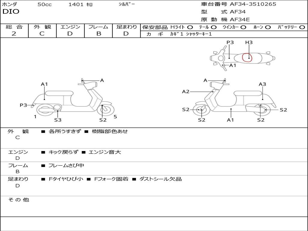 | Номер рамы / VIN | AF34-3510265 |