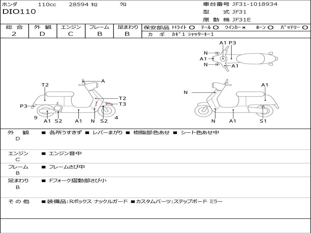 | Номер рамы / VIN | JF31-1018934 |