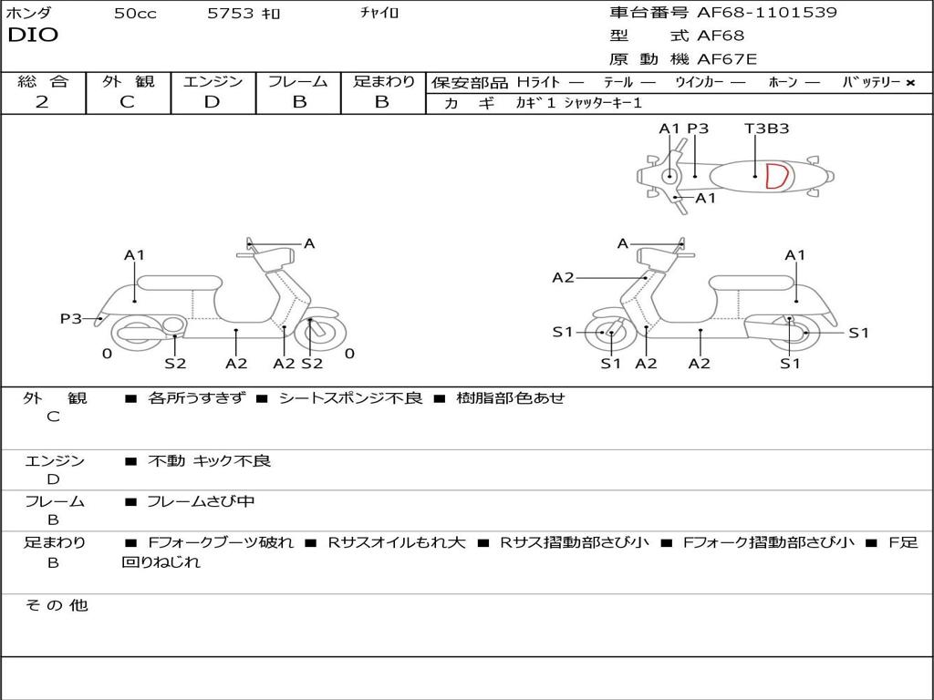 | Номер рамы / VIN | AF68-1101539 |
