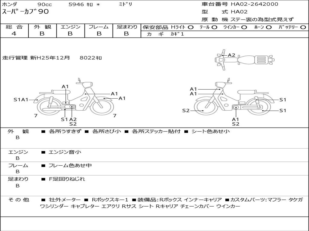| Номер рамы / VIN | HA02-2642000 |