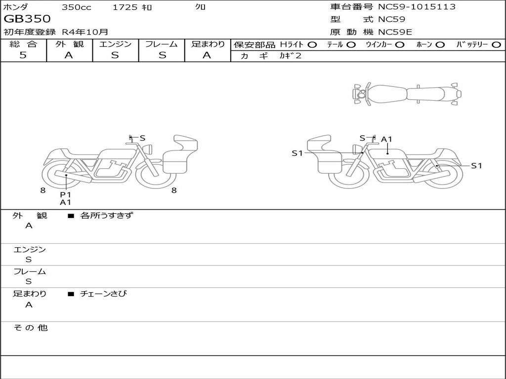 | Номер рамы / VIN | NC59-1015113 |