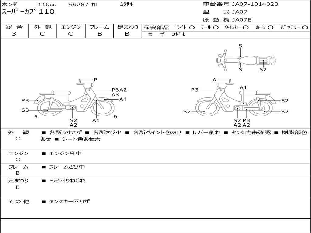 | Номер рамы / VIN | JA07-1014020 |