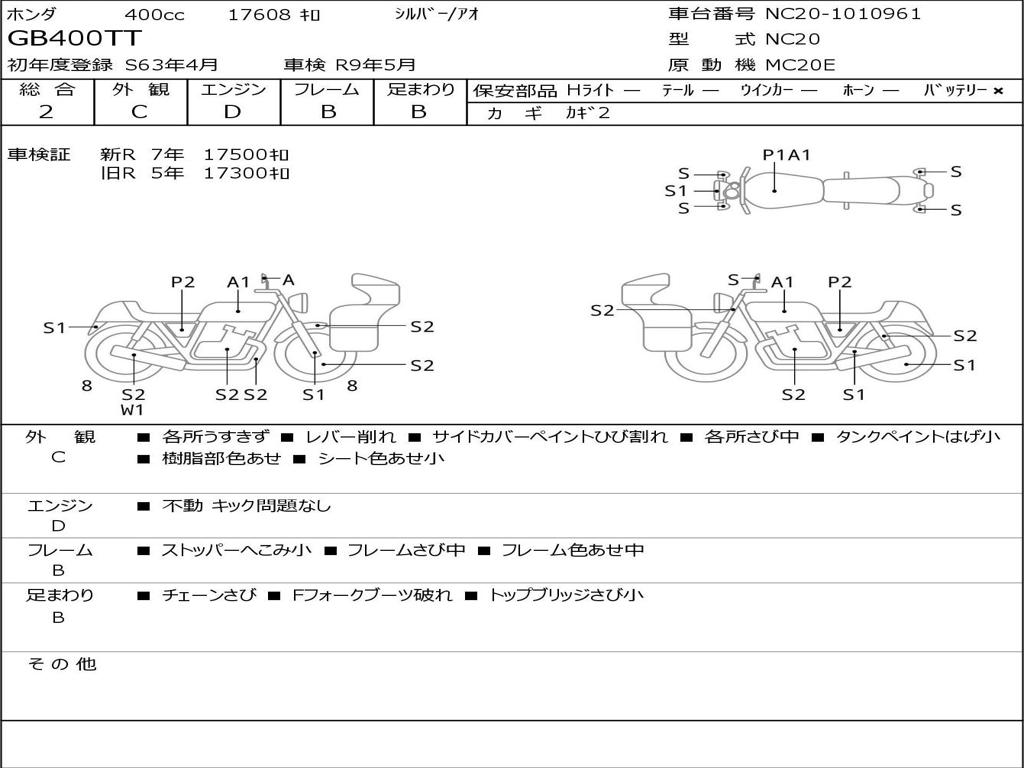 | Номер рамы / VIN | NC20-1010961 |