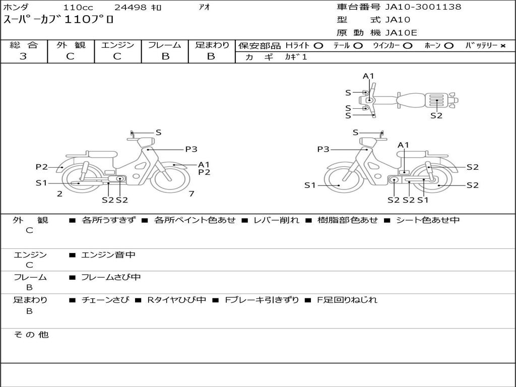 | Номер рамы / VIN | JA10-3001138 |