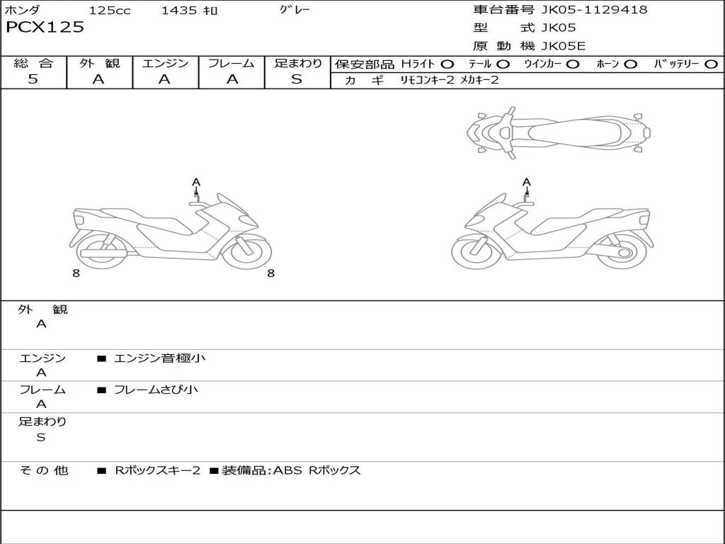 | Номер рамы / VIN | JK05-1129418 |
