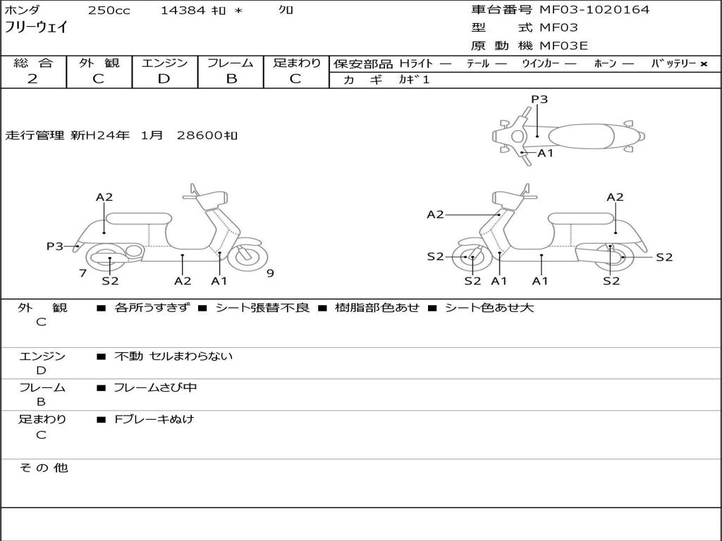 | Номер рамы / VIN | MF03-1020164 |