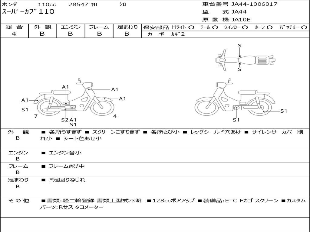 | Номер рамы / VIN | JA44-1006017 |