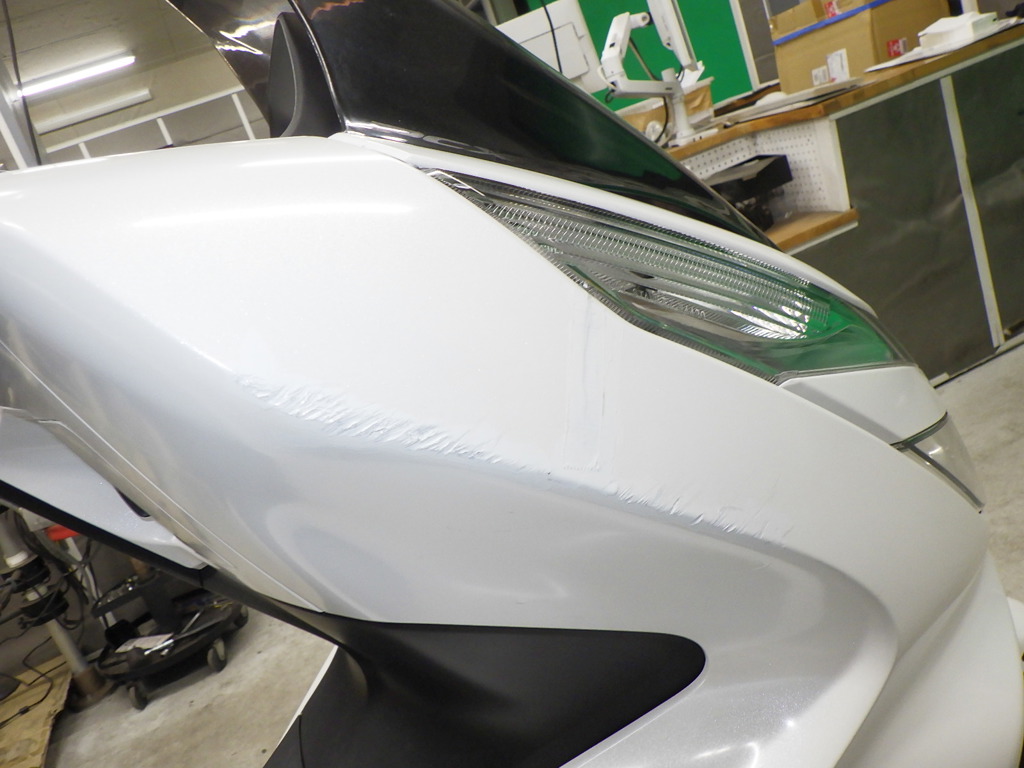 | центр. | царапины <много>, частичная подкраска, трещины |