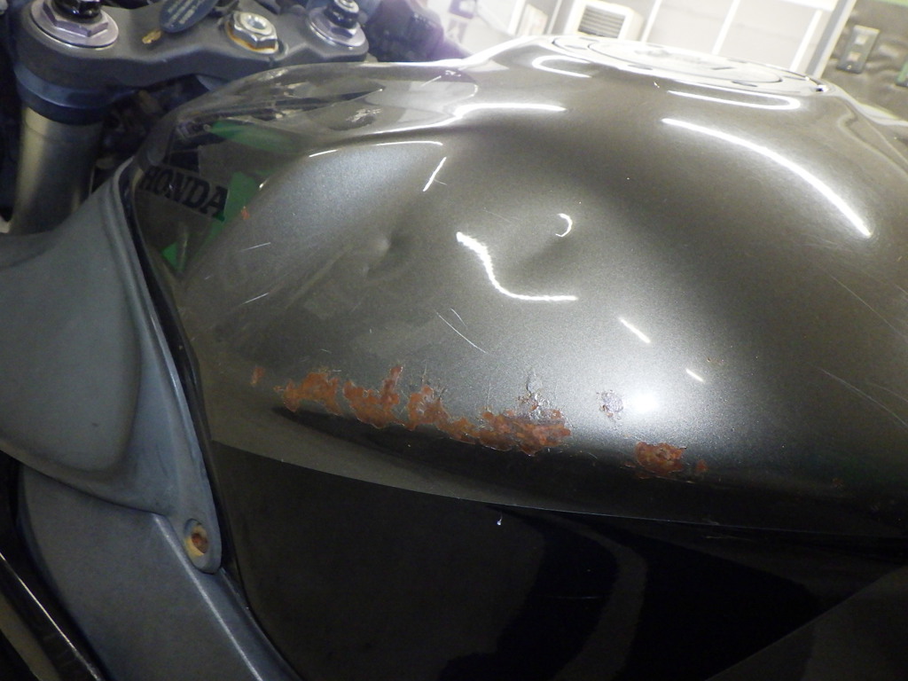 | бензобак | царапины <много>, вмятина <много>, rust paint, потертость краски <очень много> |