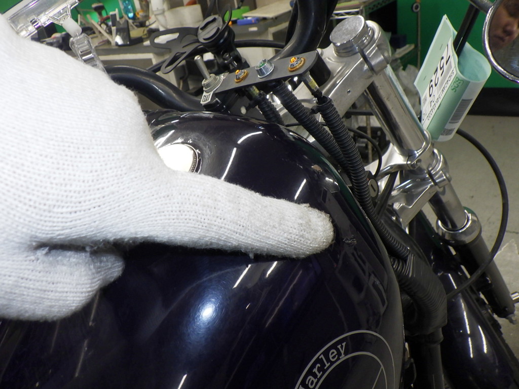 | бензобак | царапины <много>, вмятина <немного>, износ(потертость) краски, неоригинал |