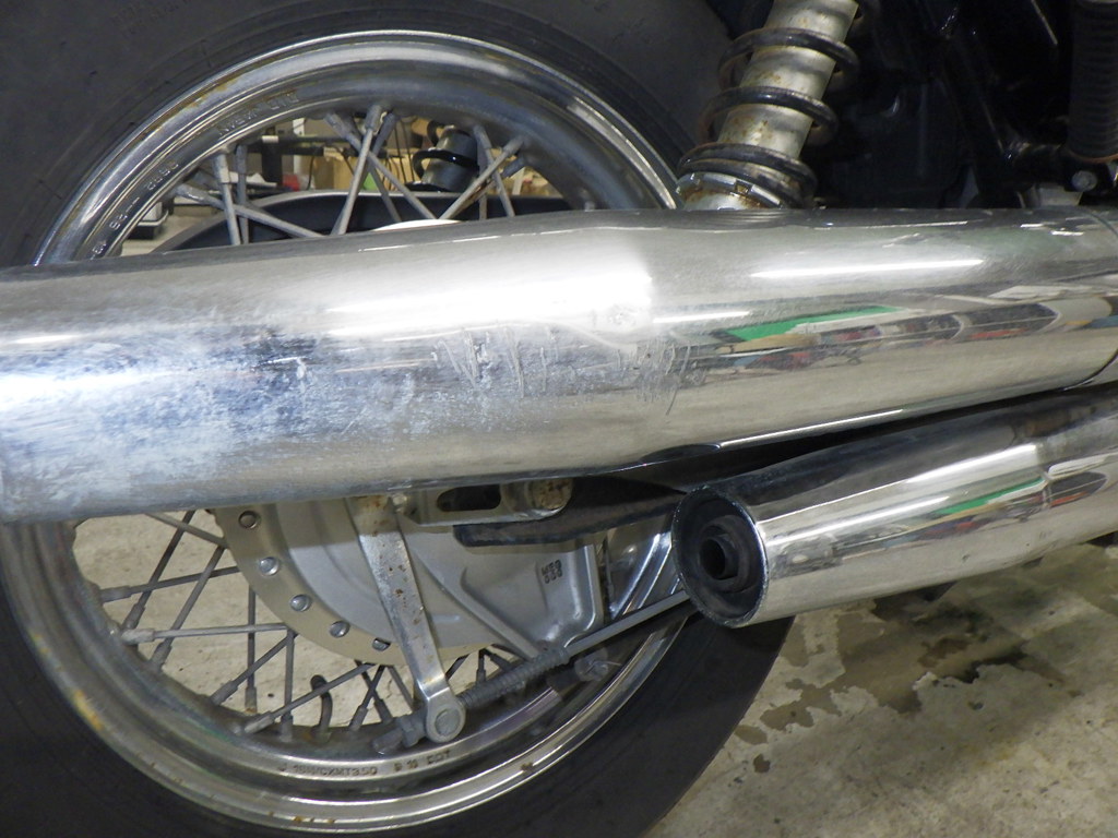 | глушитель | царапины <много>, вмятина <много>, следы коррозии <много>, полирован. |