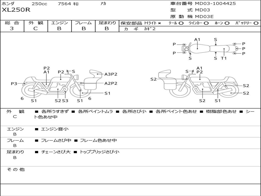 | Номер рамы / VIN | MD03-1004425 |