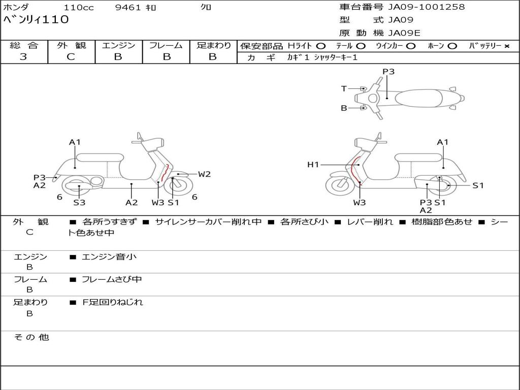 | Номер рамы / VIN | JA09-1001258 |