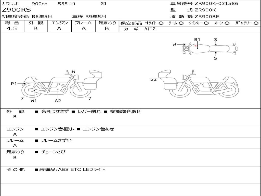 | Номер рамы / VIN | ZR900K-031586 |