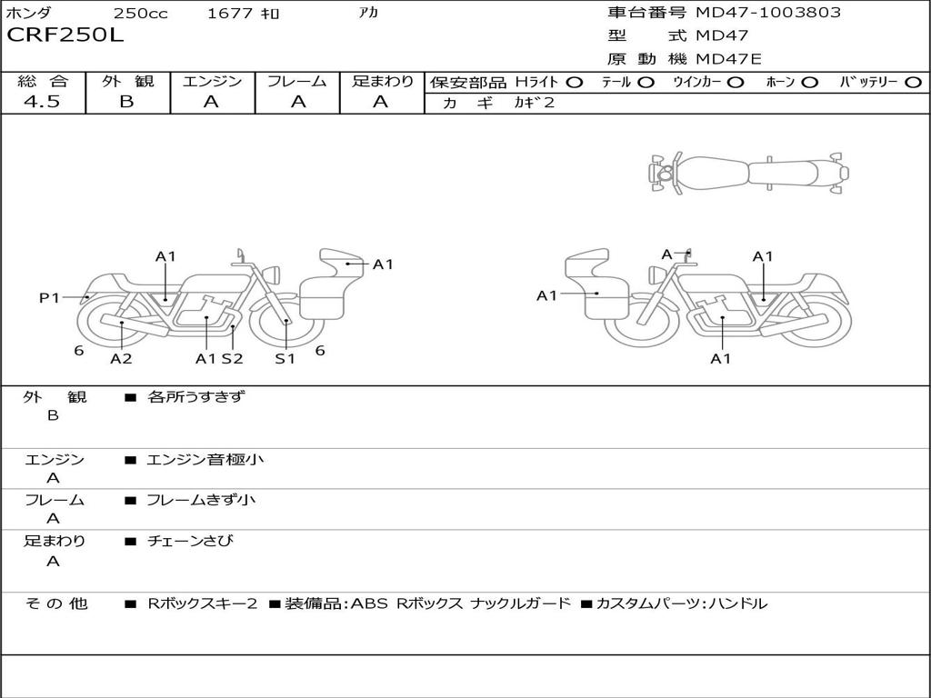 | Номер рамы / VIN | MD47-1003803 |