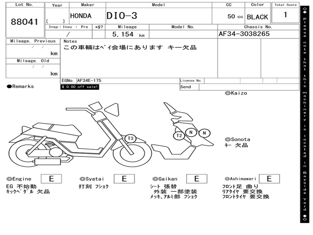 | Номер рамы / VIN | AF34-3038265 |