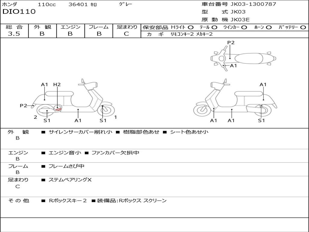 | Номер рамы / VIN | JK03-1300787 |