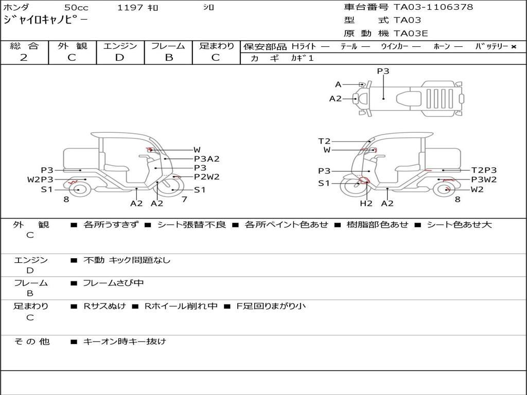 | Номер рамы / VIN | TA03-1106378 |