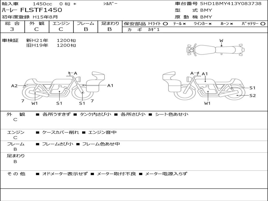 | Номер рамы / VIN | 5HD1BMY413Y083738 |