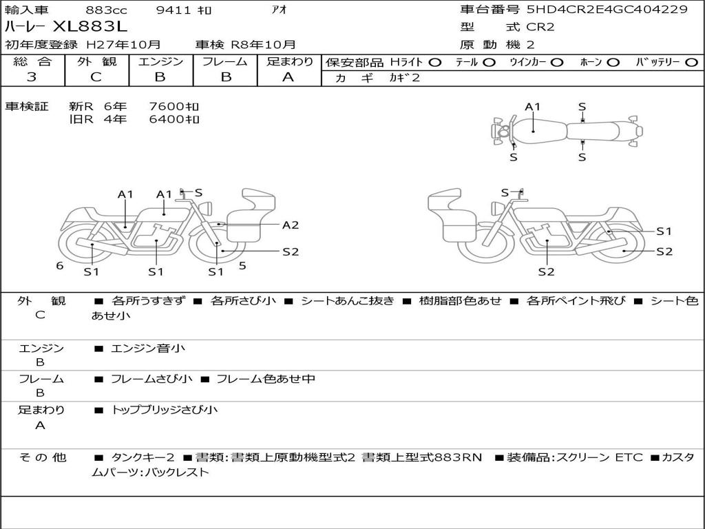 | Номер рамы / VIN | 5HD4CR2E4GC404229 |
