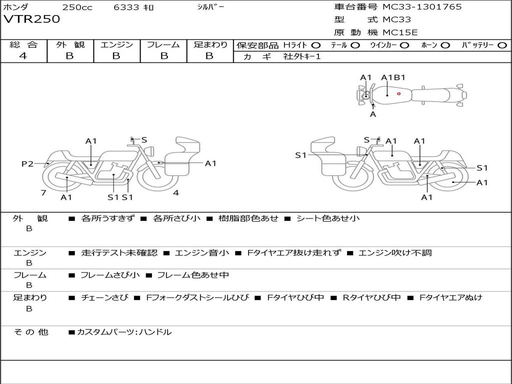 | Номер рамы / VIN | MC33-1301765 |