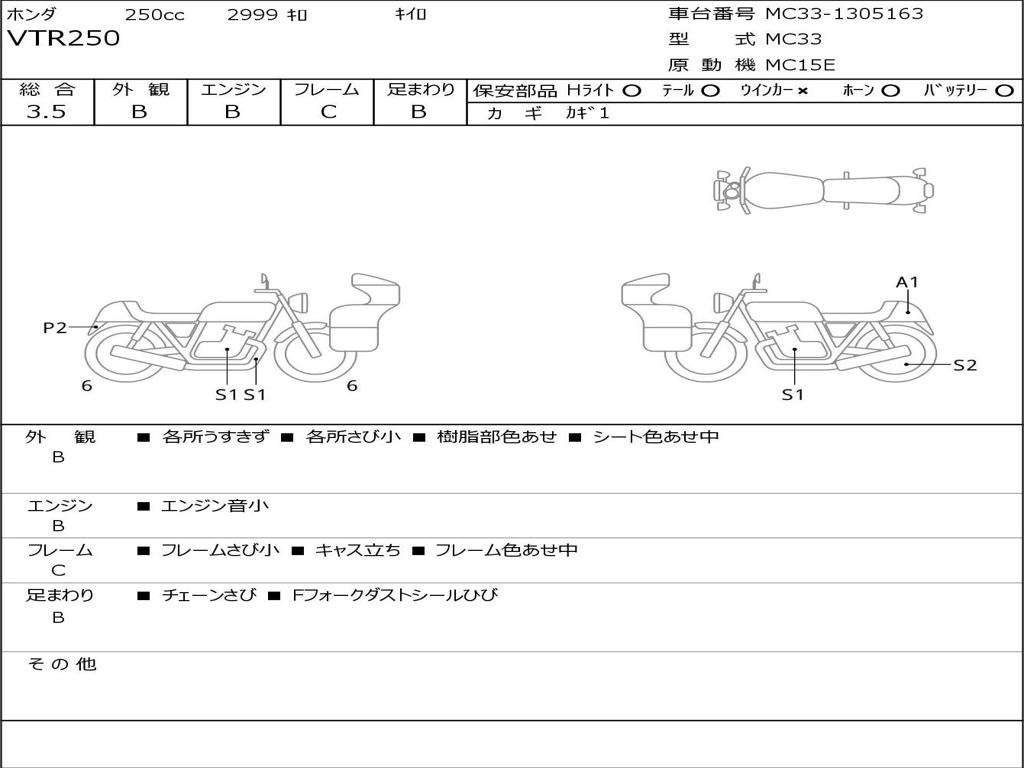 | Номер рамы / VIN | MC33-1305163 |