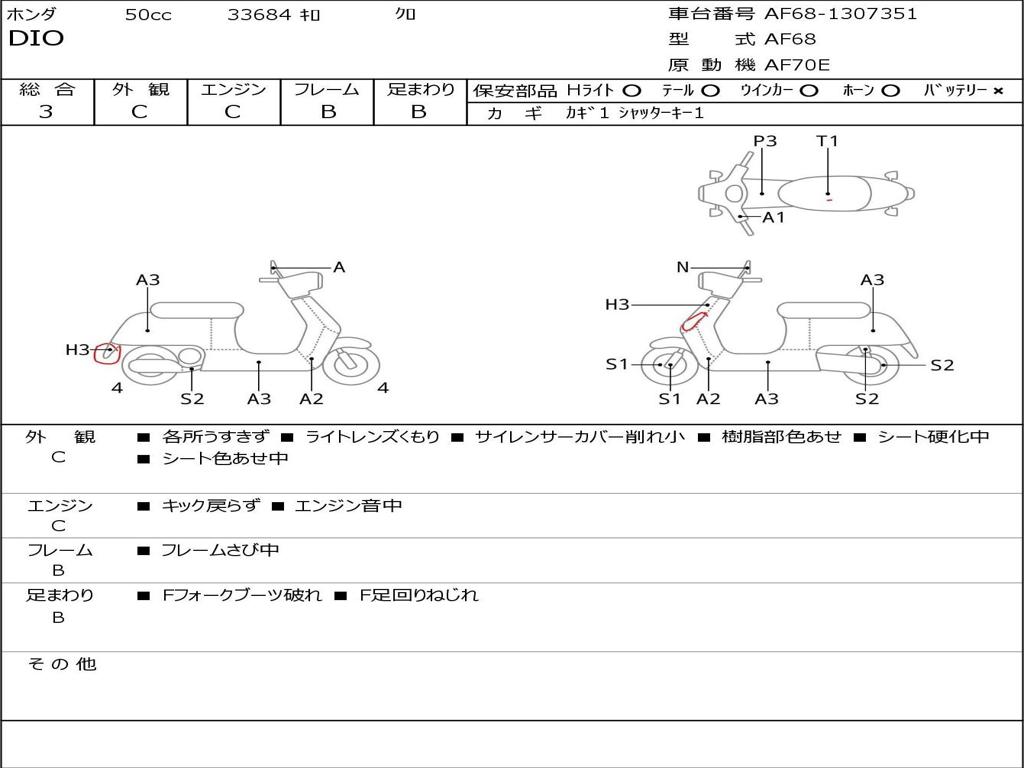 | Номер рамы / VIN | AF68-1307351 |