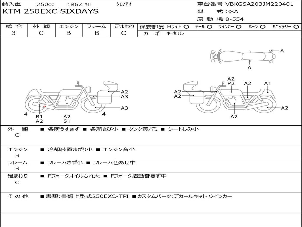 | Номер рамы / VIN | VBKGSA203JM220401 |