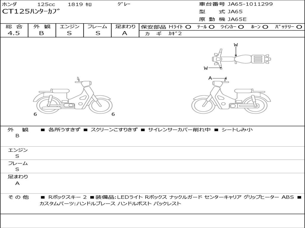 | Номер рамы / VIN | JA65-1011299 |