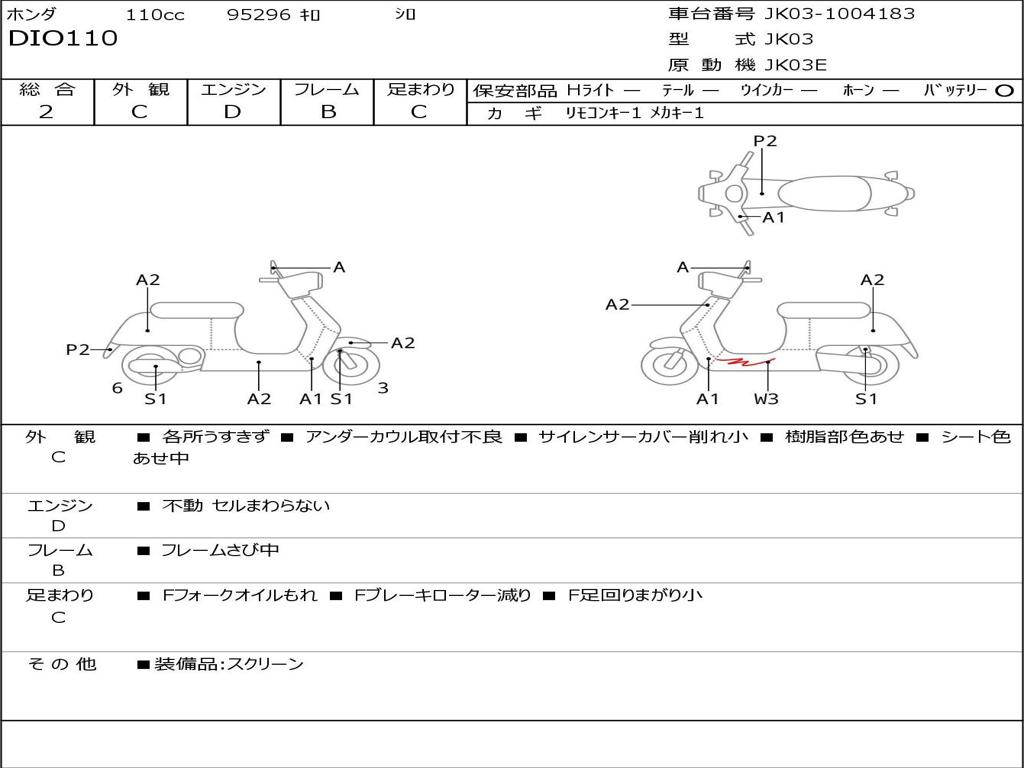 | Номер рамы / VIN | JK03-1004183 |
