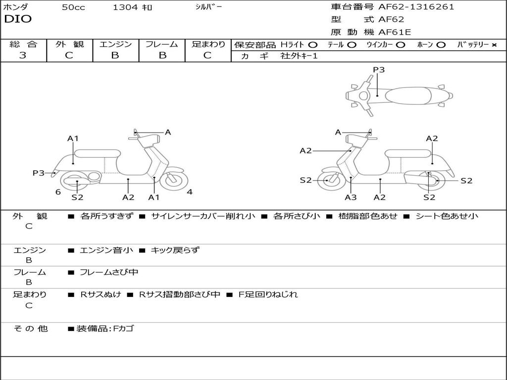 | Номер рамы / VIN | AF62-1316261 |