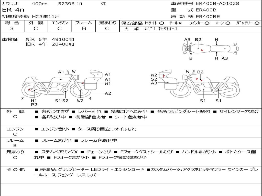 | Номер рамы / VIN | ER400B-A01028 |