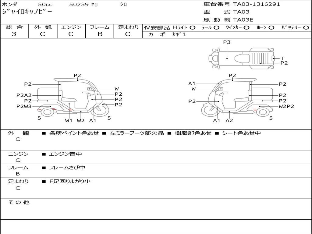 | Номер рамы / VIN | TA03-1316291 |