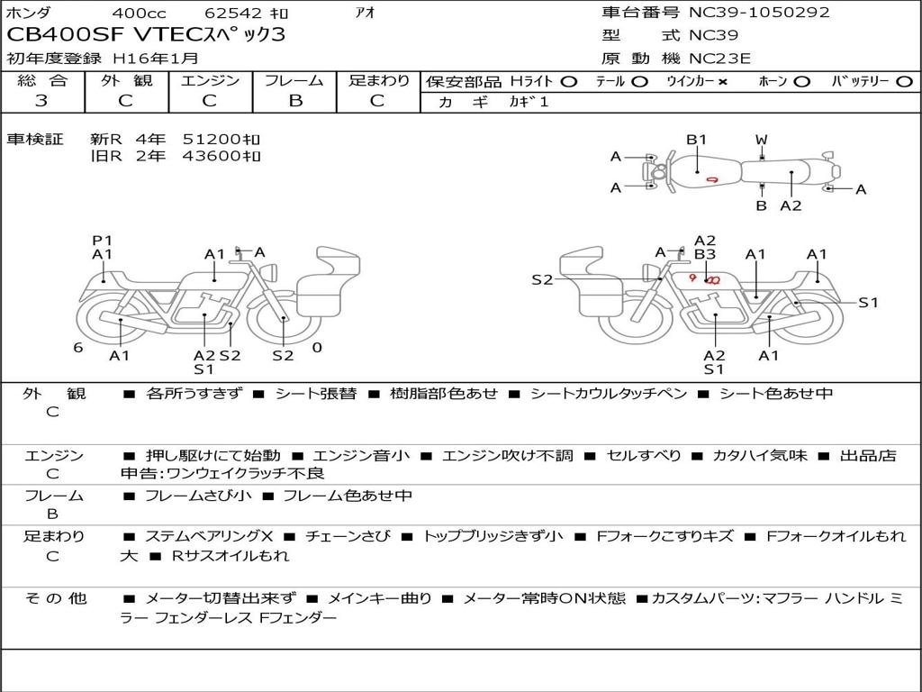 | Номер рамы / VIN | NC39-1050292 |