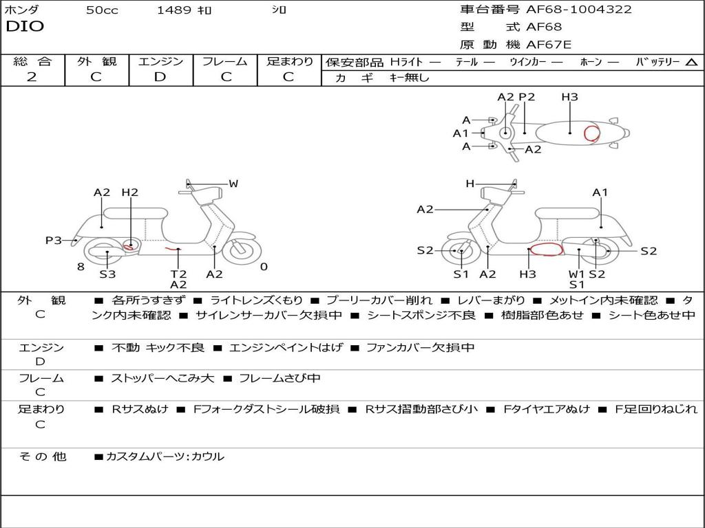 | Номер рамы / VIN | AF68-1004322 |