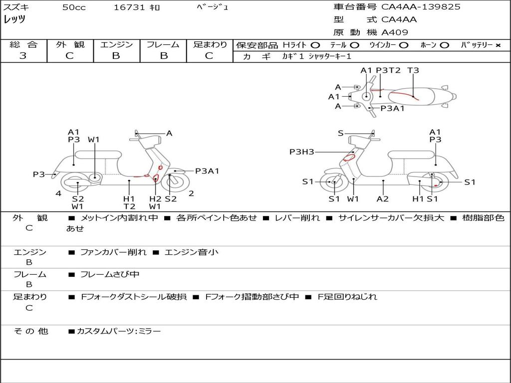 | Номер рамы / VIN | CA4AA-139825 |