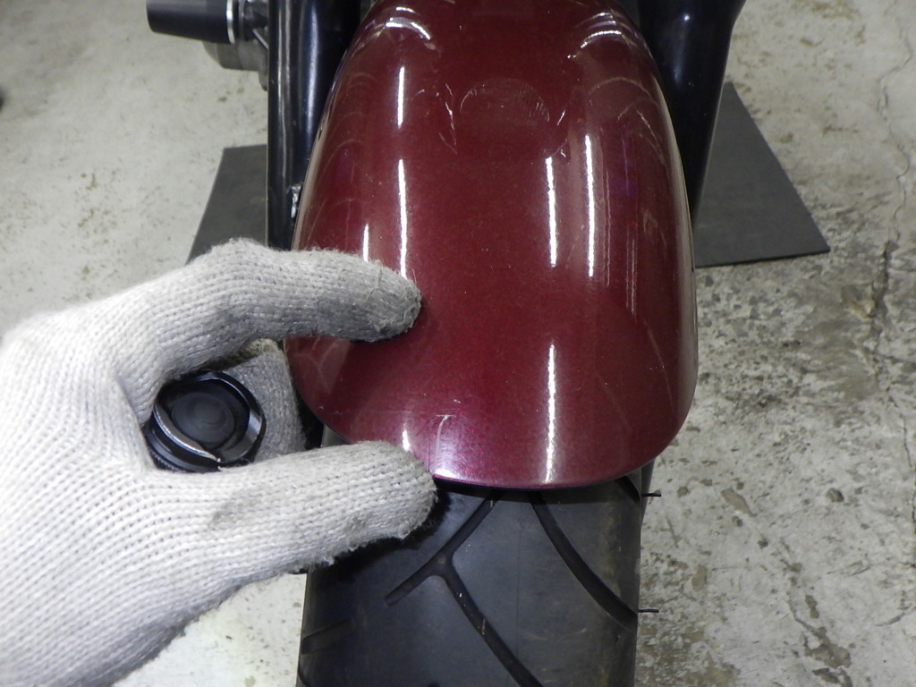 внешняя часть вилки царапины <много>, перекрашено