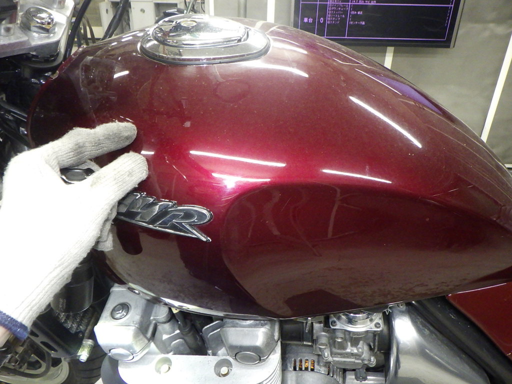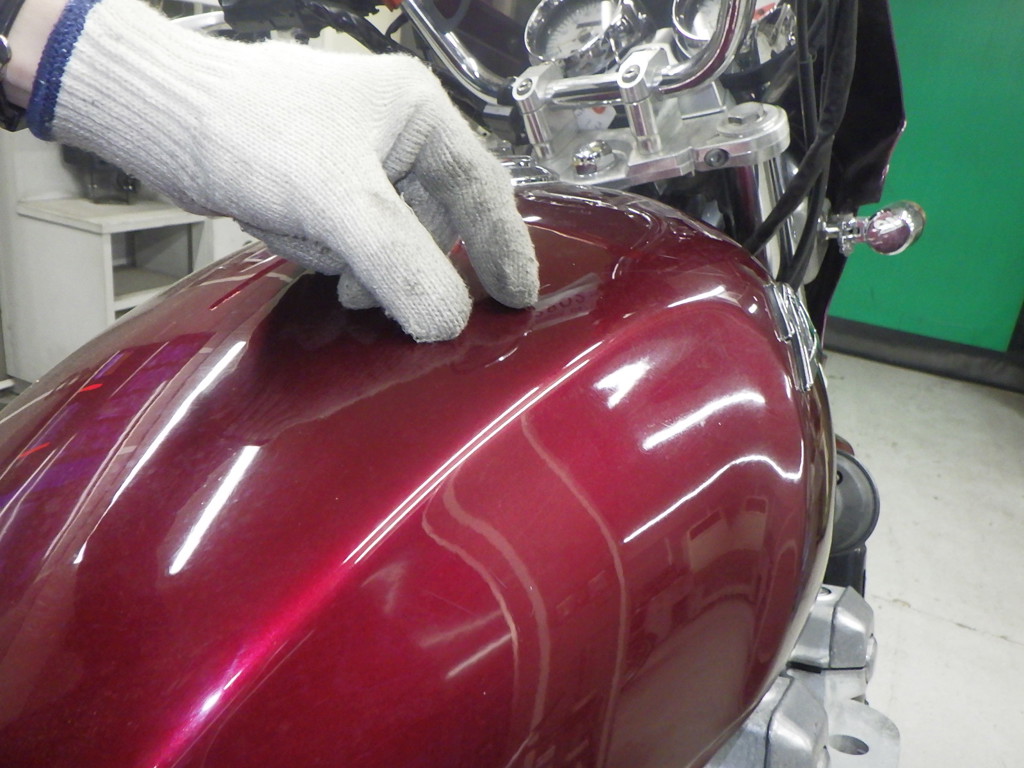 бензобак царапины <много>, частичная подкраска, вмятина <средне>