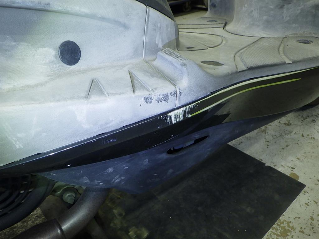 | снизу | царапины <много>, износ(потертость) краски <много>, трещины |