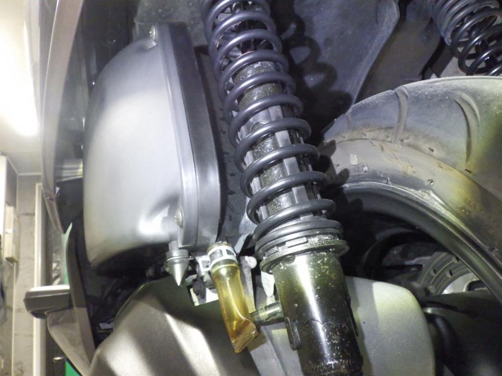 | внешняя часть вилки | царапины, следы коррозии <много>, потек масла, неисправен сальник, уровень шума |