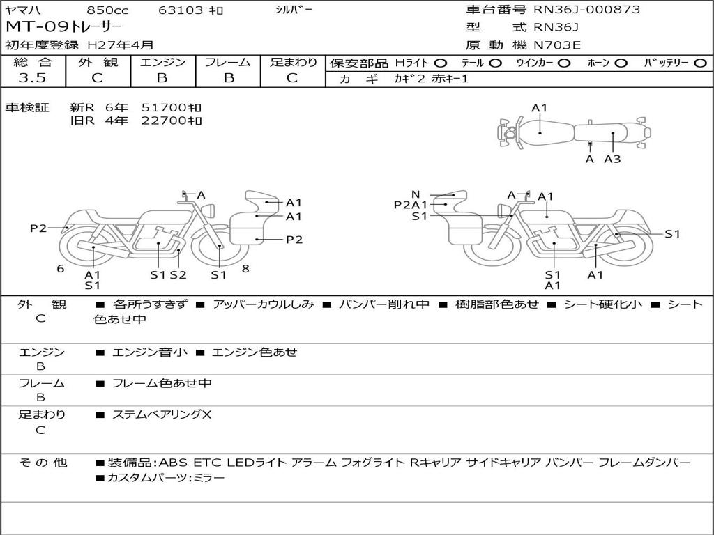 | Номер рамы / VIN | RN36J-000873 |