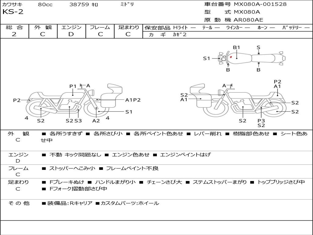 | Номер рамы / VIN | MX080A-001528 |
