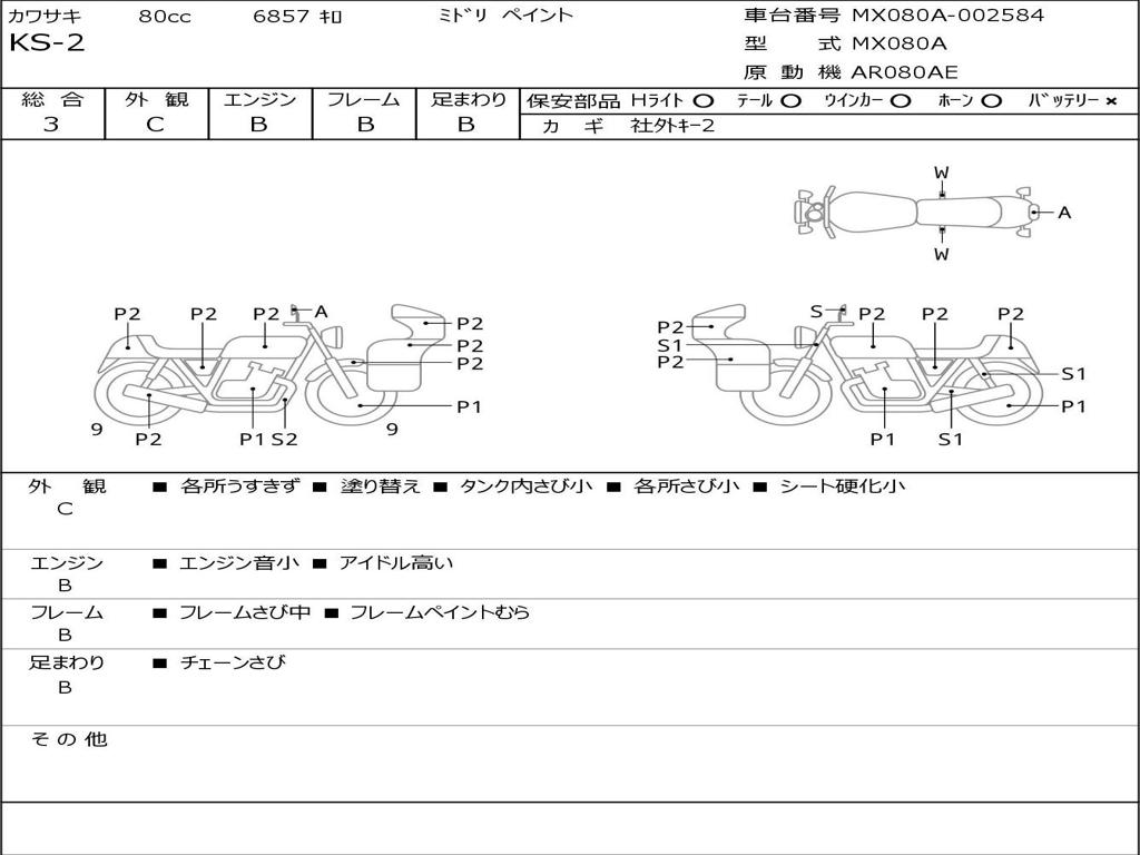 | Номер рамы / VIN | MX080A-002584 |