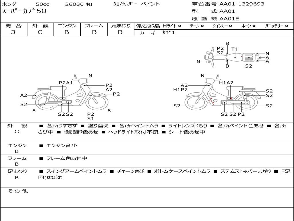 | Номер рамы / VIN | AA01-1329693 |