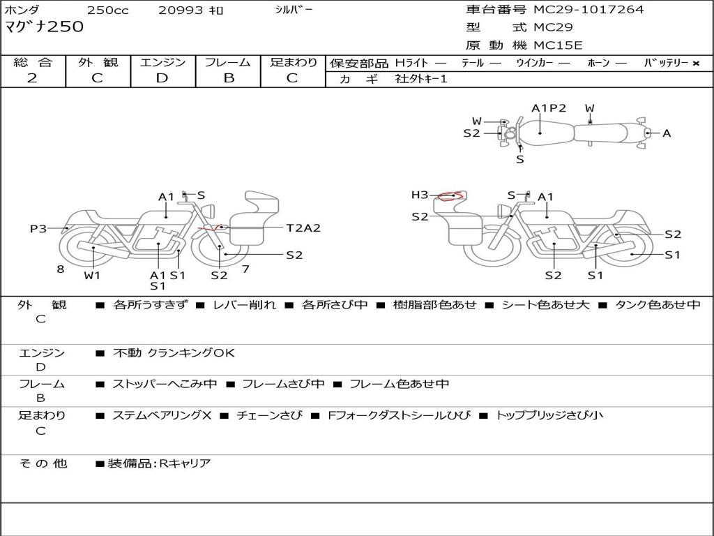 | Номер рамы / VIN | MC29-1017264 |