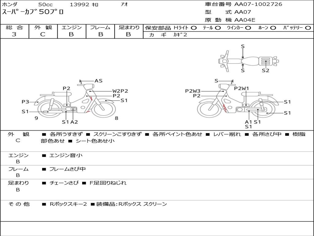| Номер рамы / VIN | AA07-1002726 |