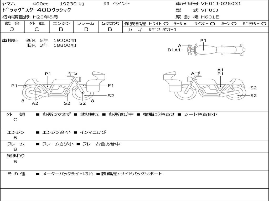 | Номер рамы / VIN | VH01J-026031 |