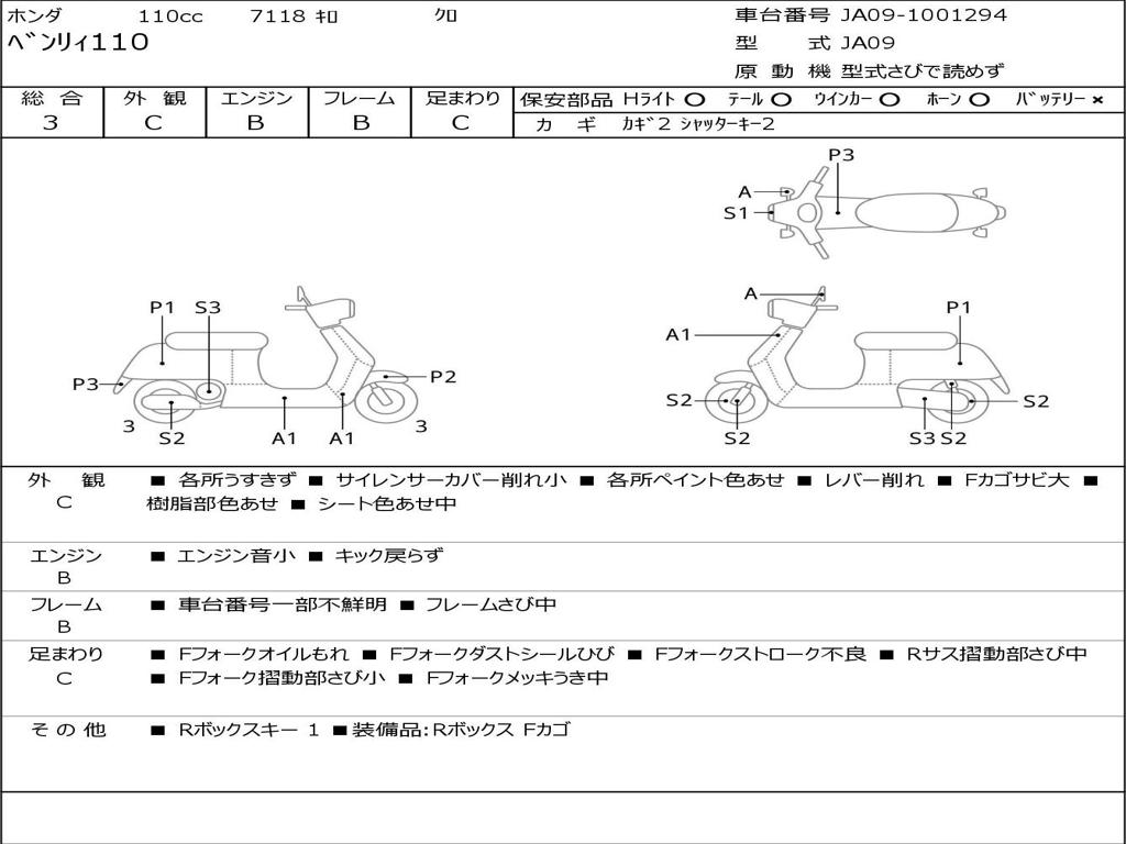 | Номер рамы / VIN | JA09-1001294 |