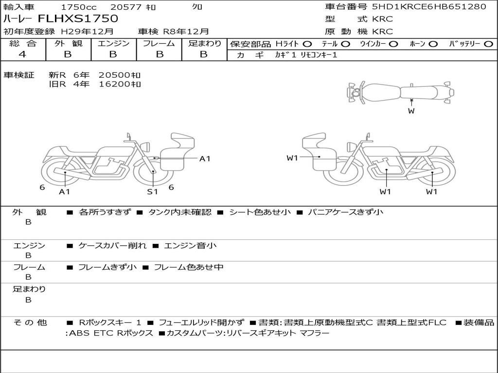 | Номер рамы / VIN | 5HD1KRCE6HB651280 |