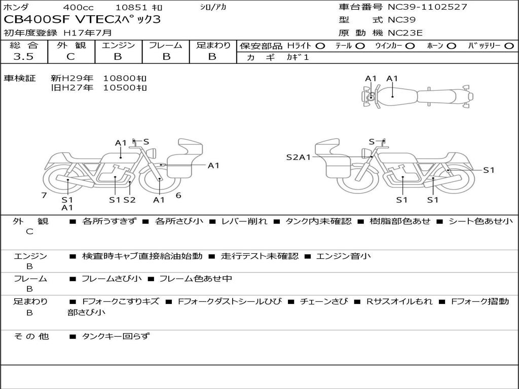 | Номер рамы / VIN | NC39-1102527 |